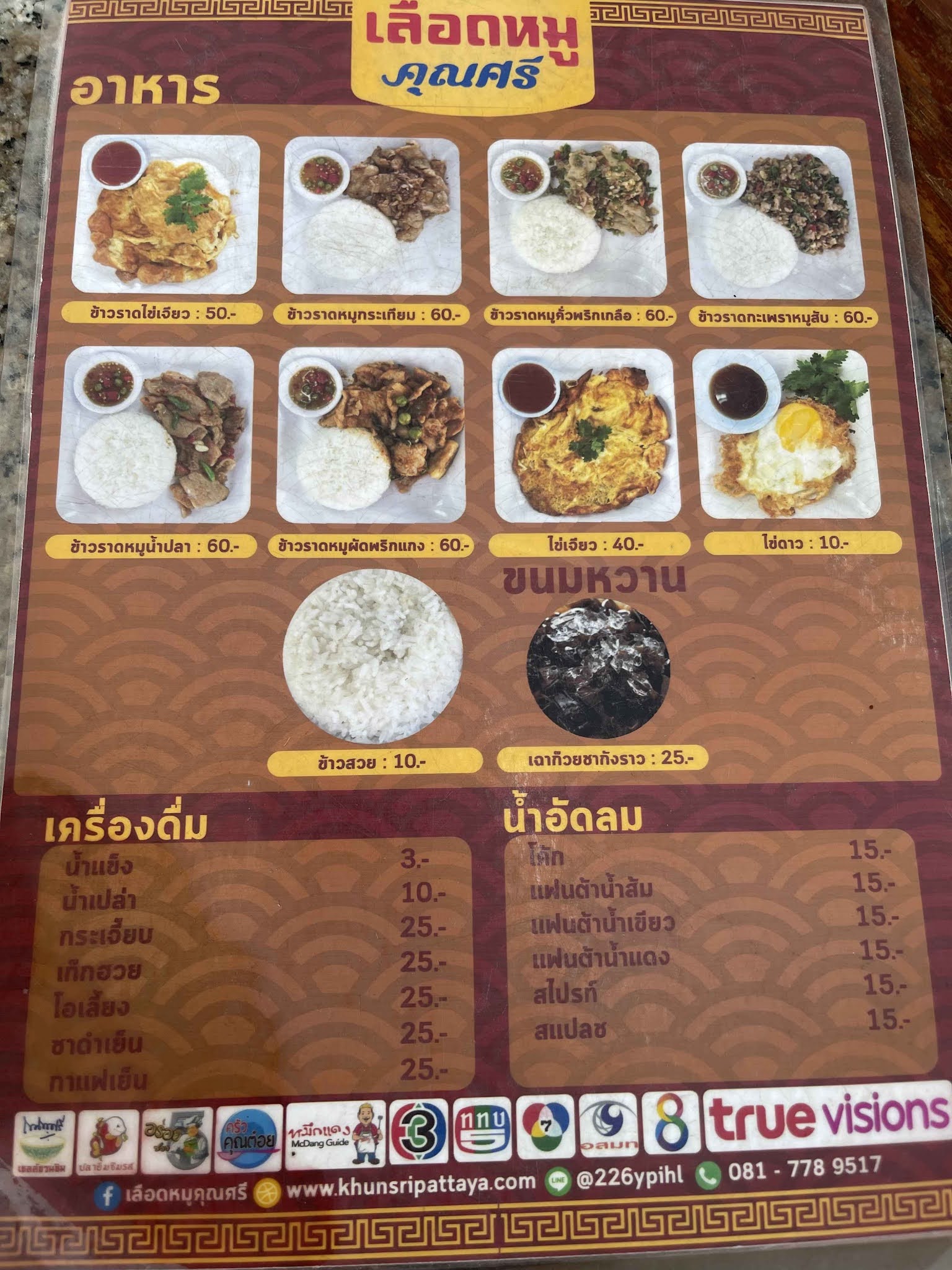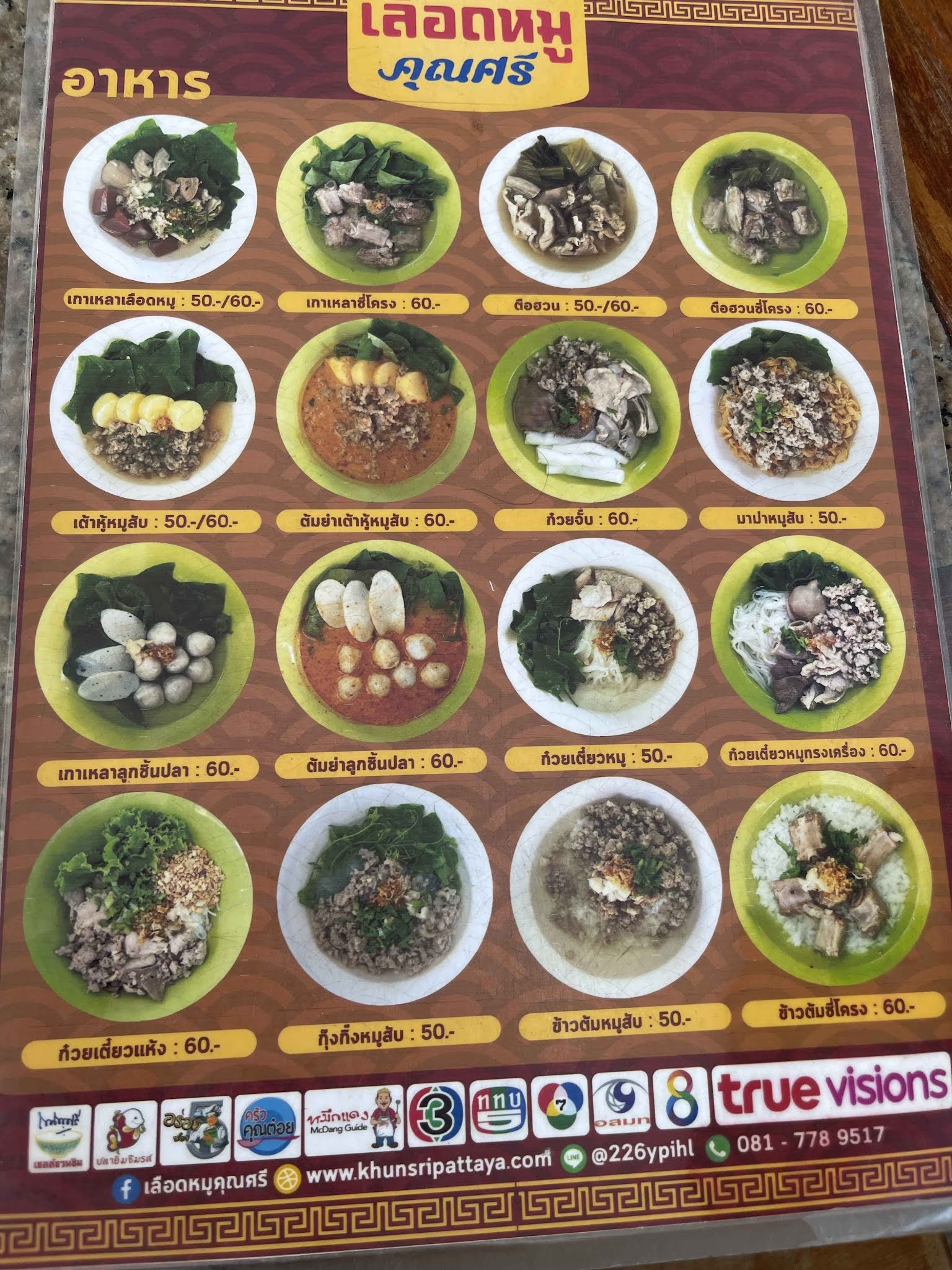 🍜平均價位大多都在人均『50~80銖』之間。